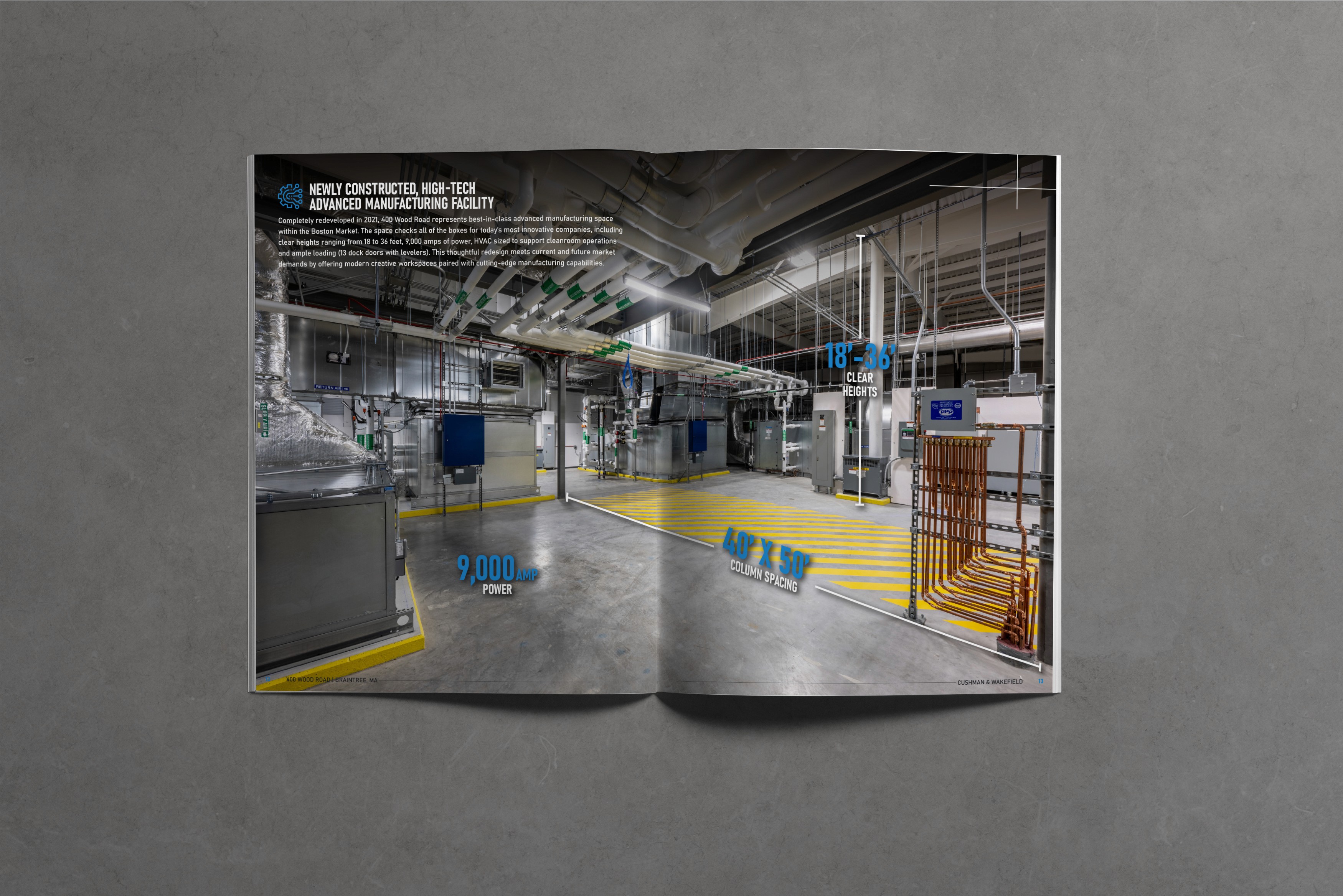 A property branding project encompassing logo design and layout of an Offering Memorandum. 400 Wood Road is located in Braintree, MA. The brand and marketing collateral aimed to showcase the brand new construction and engineering of the building while reflecting the innovative nature of the environment.